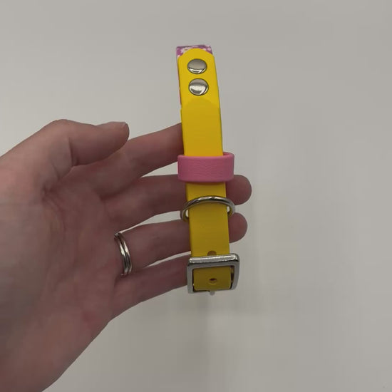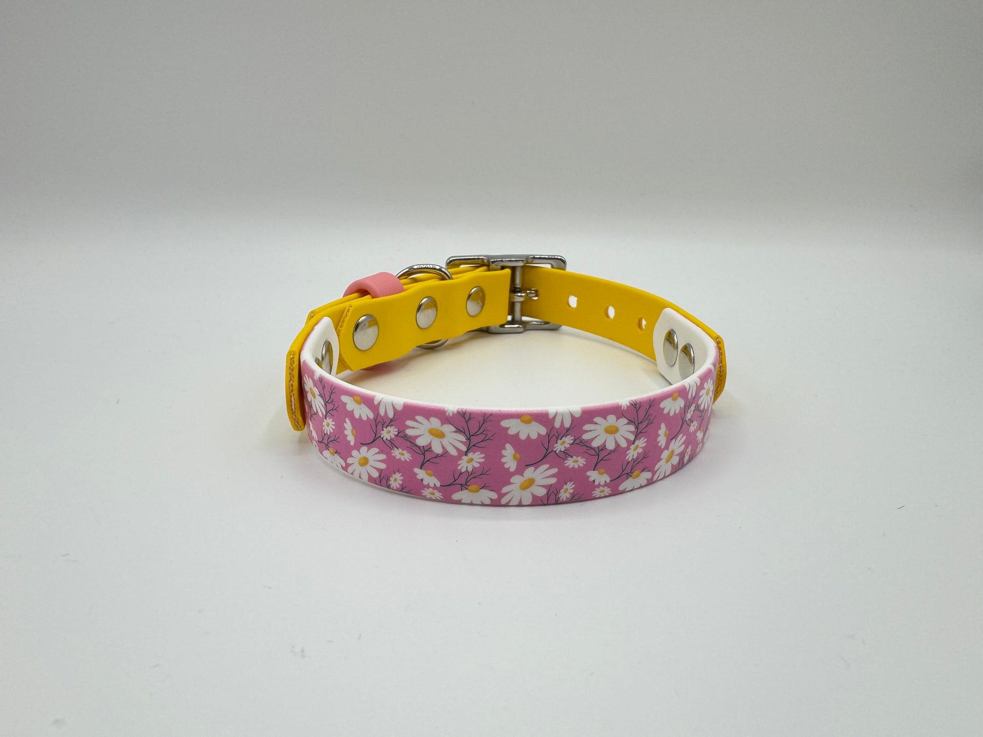 Made from 19mm UV printed Pink Daisy Biothane, with 19mm adjustable straps and Stainless Steel hardware.